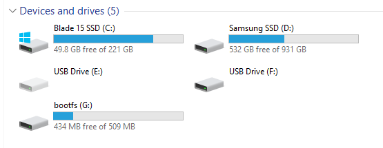 /bootfsor/boot, which is accessible, and/USB Drive, which is not. This is normal on Windows, as it cannot read Linux-based file systems.